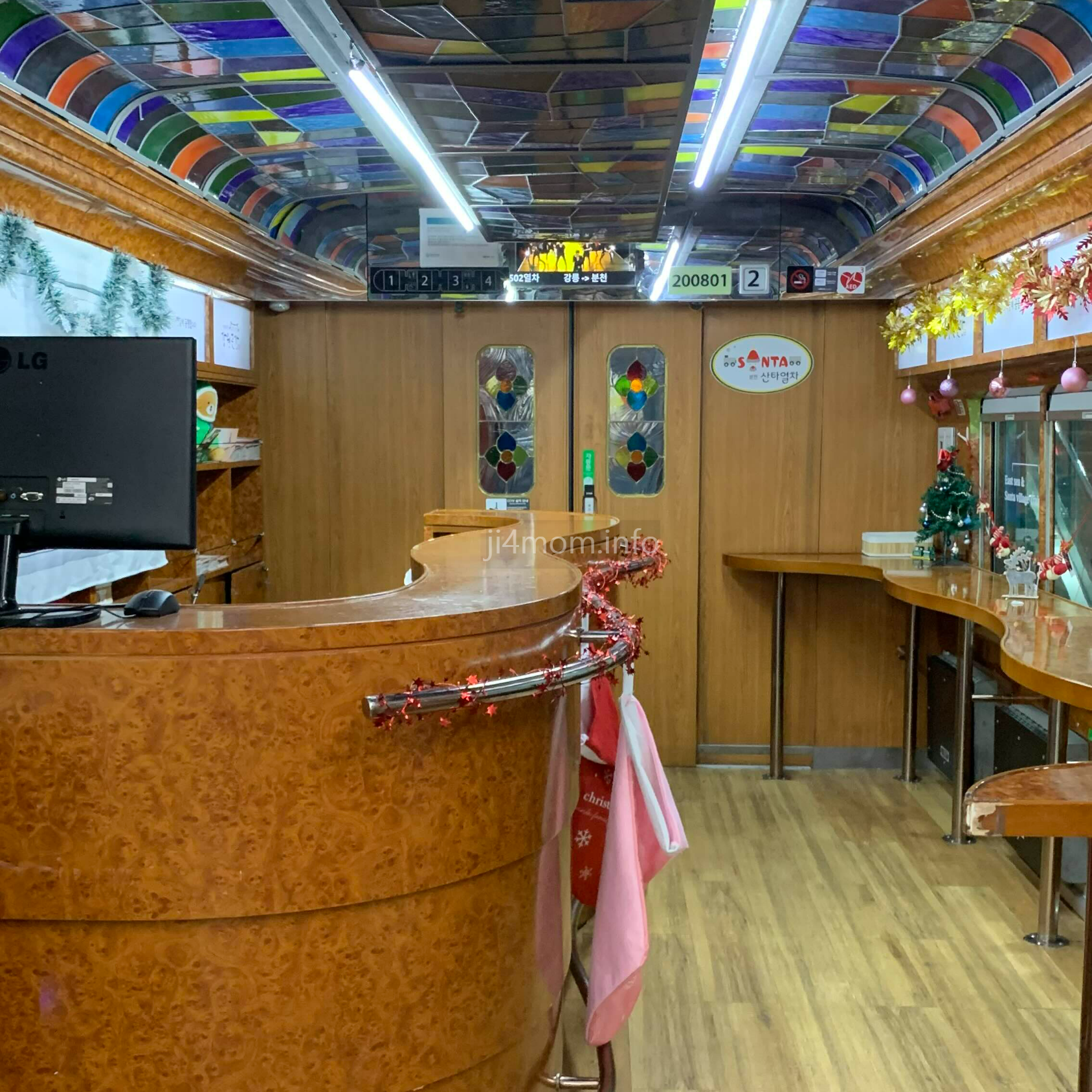 일반 열차와 다를 바 없어 보이지만 의자마다 루돌프의 뿔이 귀엽게 장식되어 있어요.