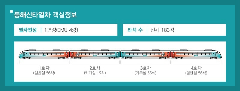 1, 4호 차는 일반 객실이에요. 2호 차는 카페실, 3호 차는 가족실로 구성되었어요.