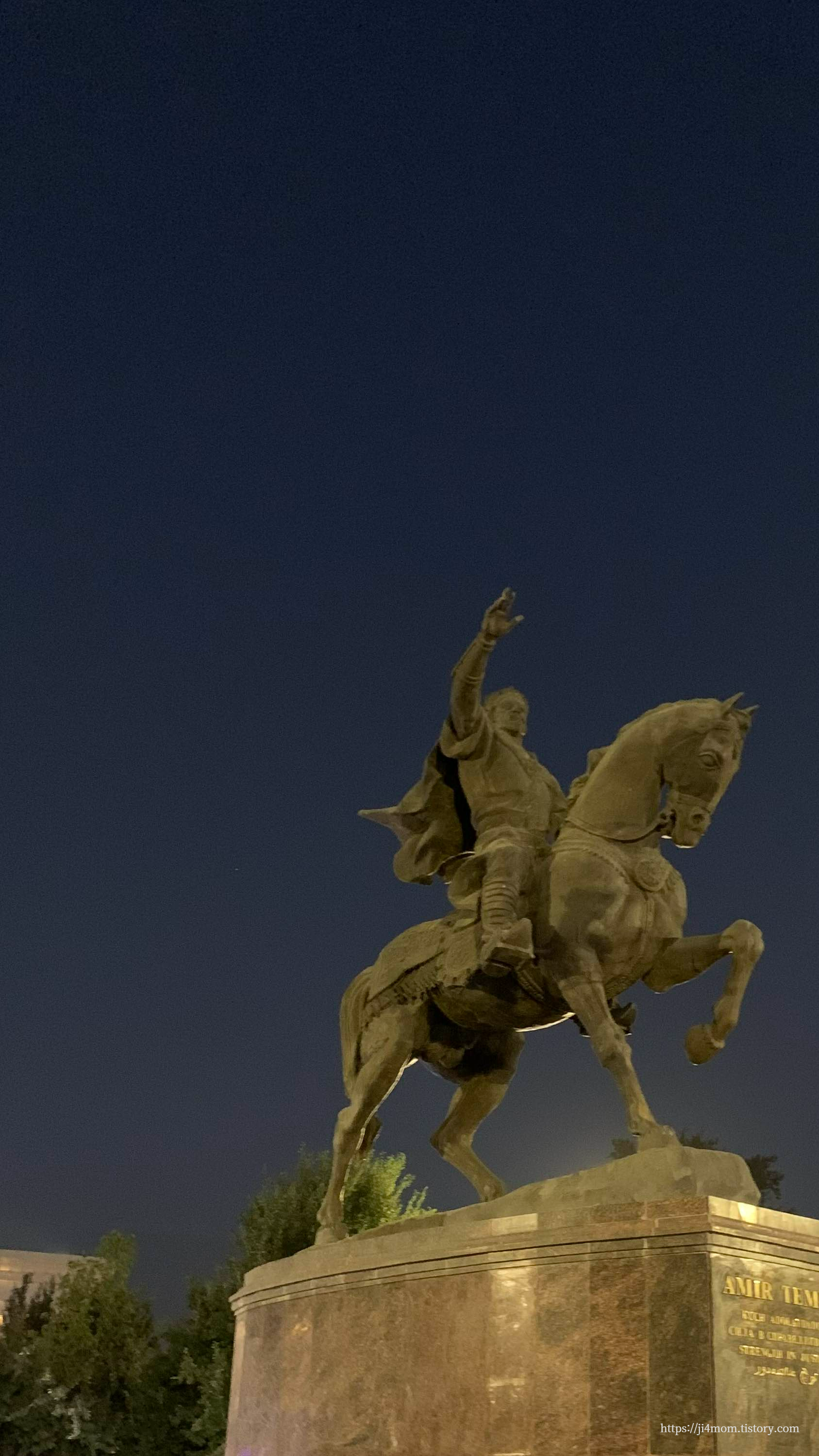용감하고 위대한 아미르 티무르 왕의 동상이 생동감이 넘칩니다.