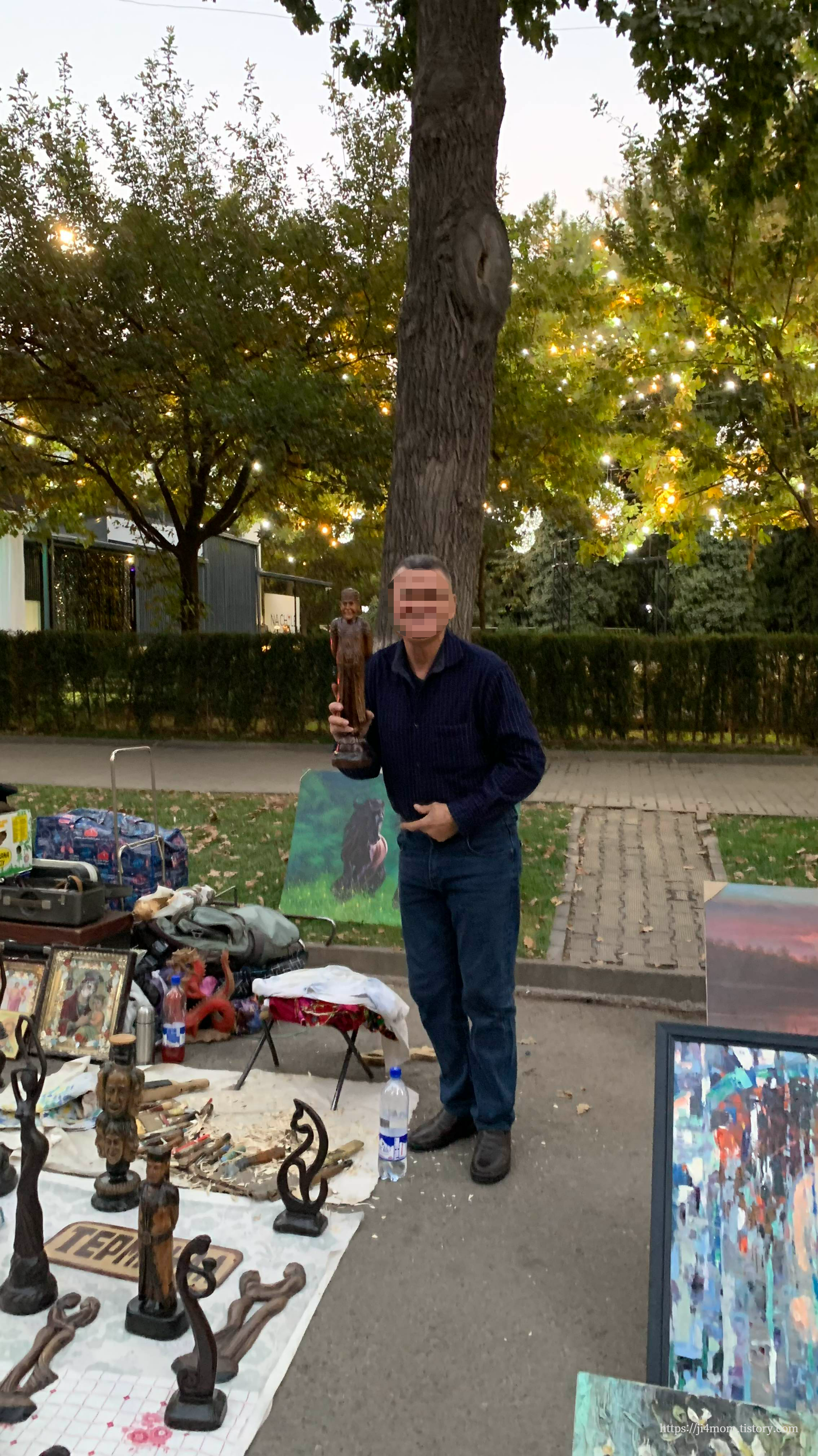 브로드웨이에서 나무를 조각하여 판매하는 인심 좋은 아저씨