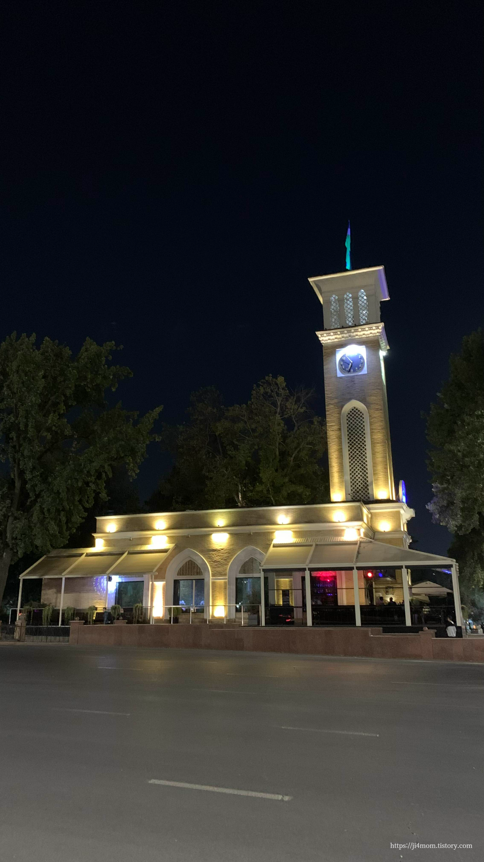 아미르 티무르 광장에서 길을 건너면 깔끔하고 현대적인 종탑이 보입니다.